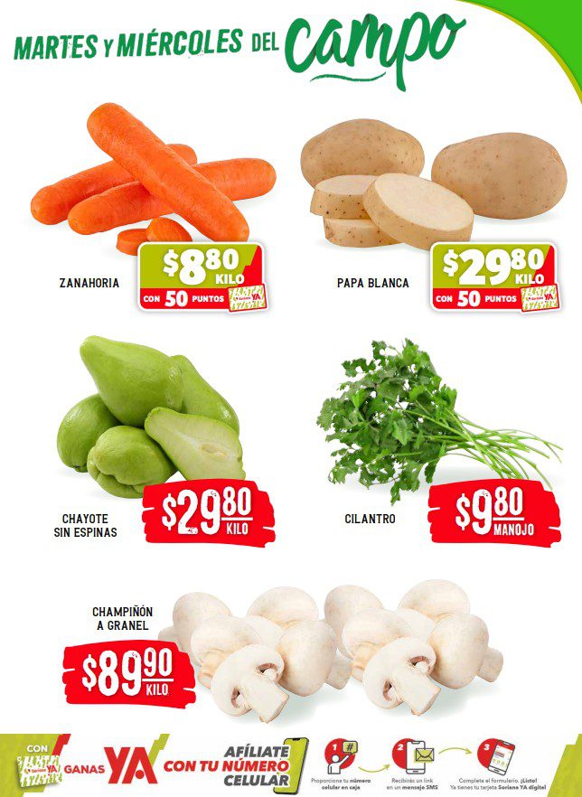 - Zanahoria a $8.80 el kilo con 50 Puntos Soriana Ya.