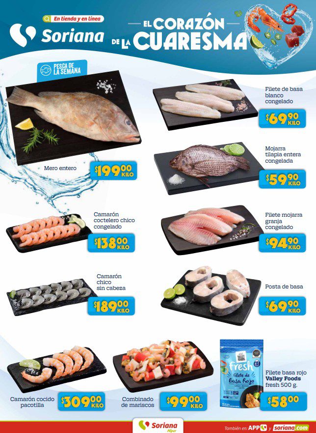 - Filete Basa rojo Valley Foods Fresh a $58.00 el empaque de 500 g.