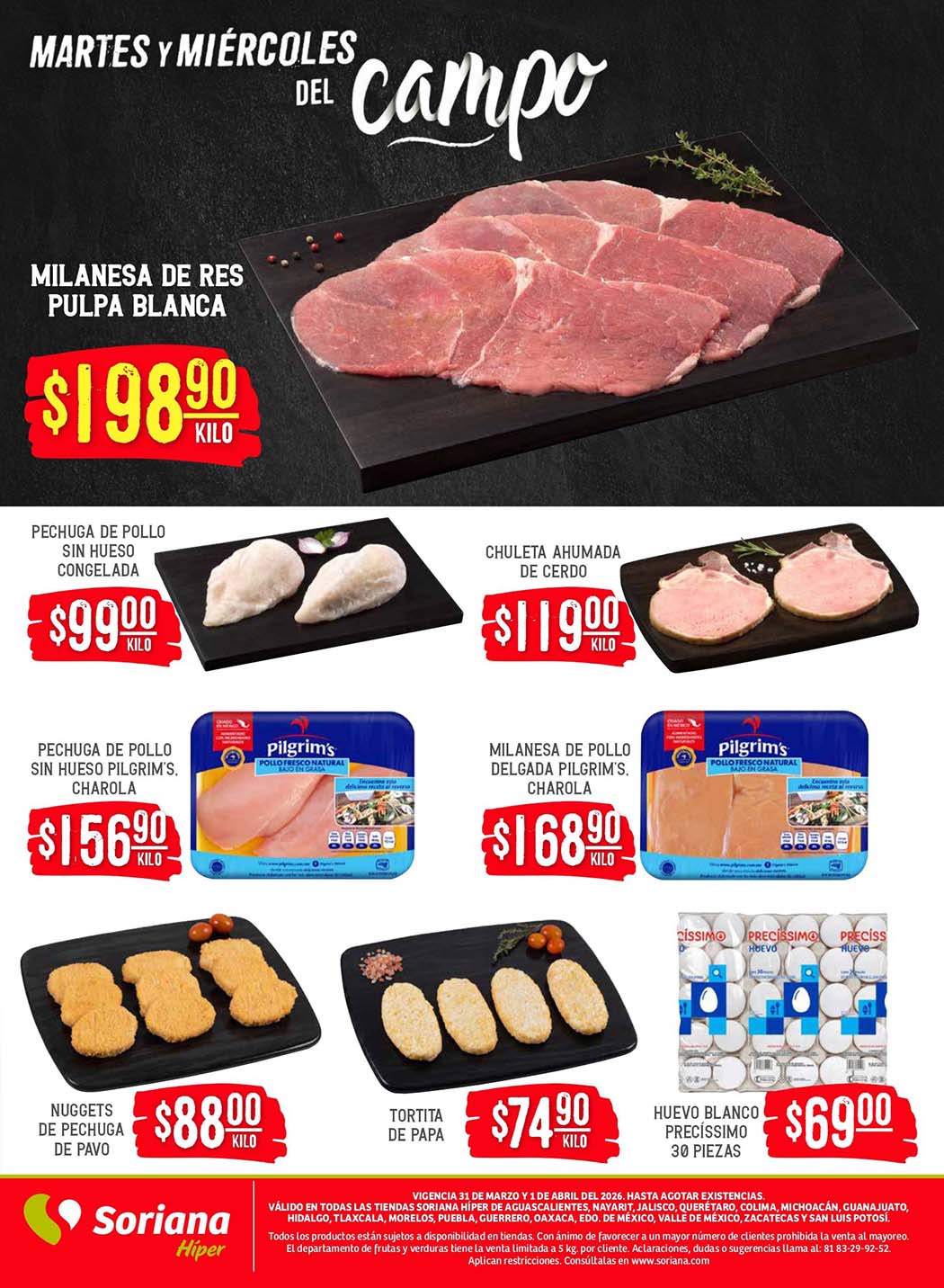 El Martes y Miércoles del Campo de Soriana presenta las siguientes ofertas de frutas y verduras para este 31 de marzo y 1 de abril 2026 que aplican en sucursales Soriana Híper participantes de la República Mexicana. Les comparto la lista de precios, para que compares y ahorres varios pesos por tus compras.