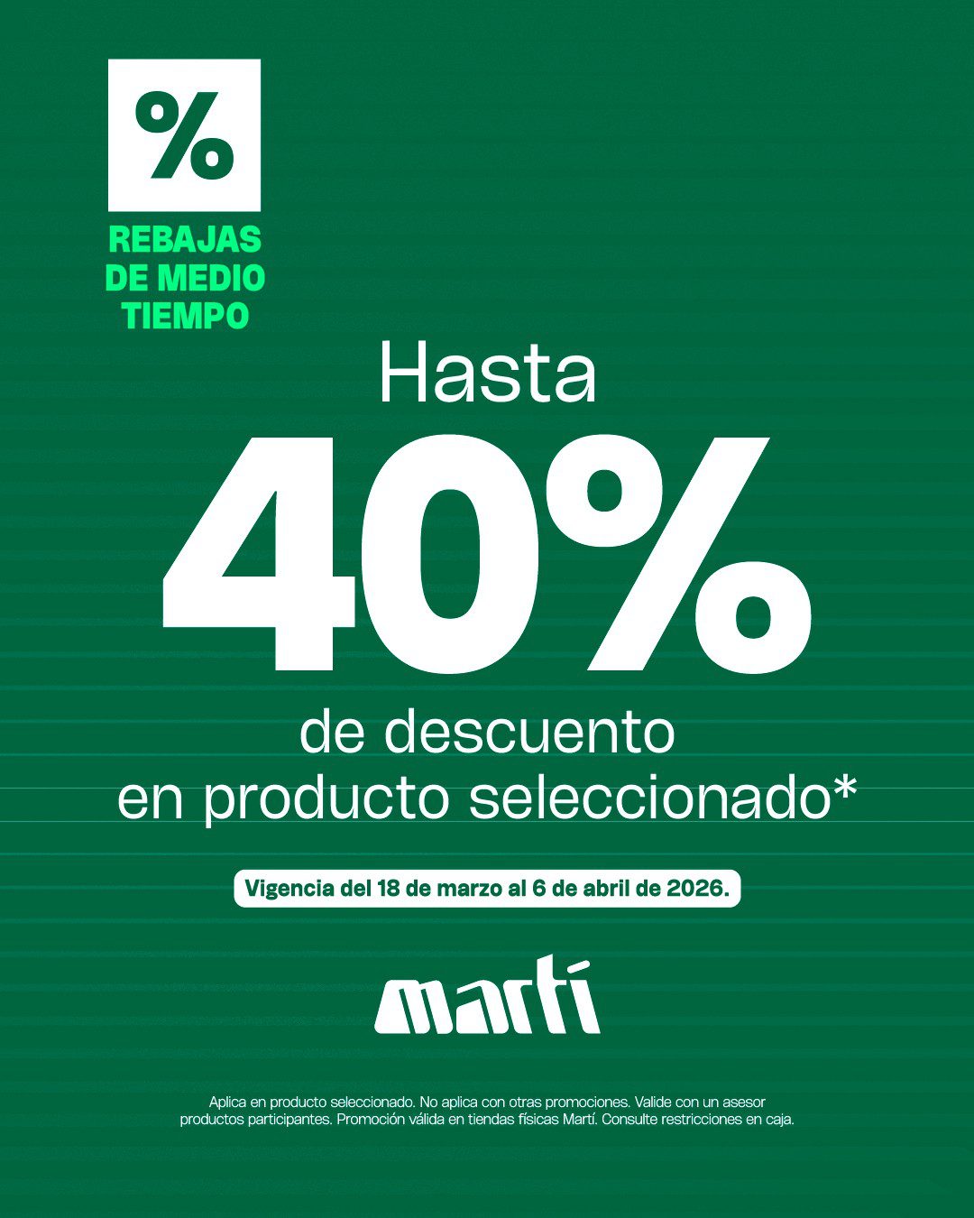 Esta promoción es válida del 18 de marzo al 06 de abril de 2026 en su tienda en línea www.marti.mx, en su App Martí Go y en sus sucursales físicas.