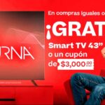 • En tus compras superiores a $10,999, te darán GRATIS 1 Smart TV FHD de 43’’ ó 1 Cupón de $3,000.00; está limitado a 1 Regalo por orden. No aplica en productos Apple, Starlink, RadioShack, Papel cortado, extra coberturas, productos Outlet, Mr Fix, Servicentro, productos digitales o descargables, productos de la marca RadioShack, Pólizas de servicio ni armado de Muebles
