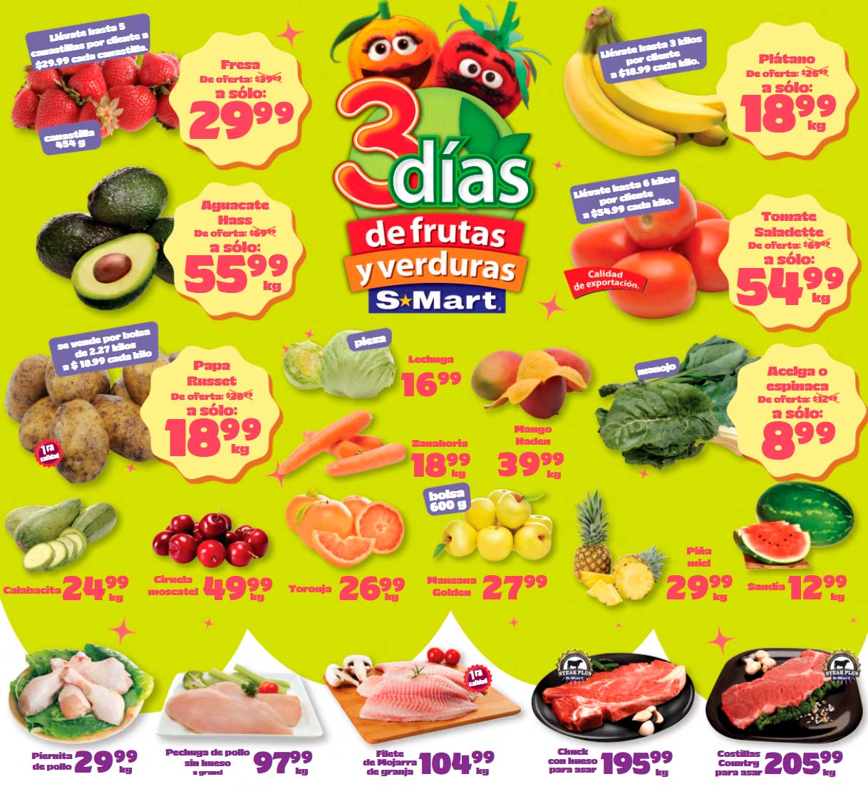 Ya pueden ver el folleto de S-Mart “3 Días de Frutas y Verduras”, que contiene las siguientes ofertas válidas del 21 al 23 de abril 2026, en el encontrarás precios especiales que puedes aprovechar para surtir tu despensa.