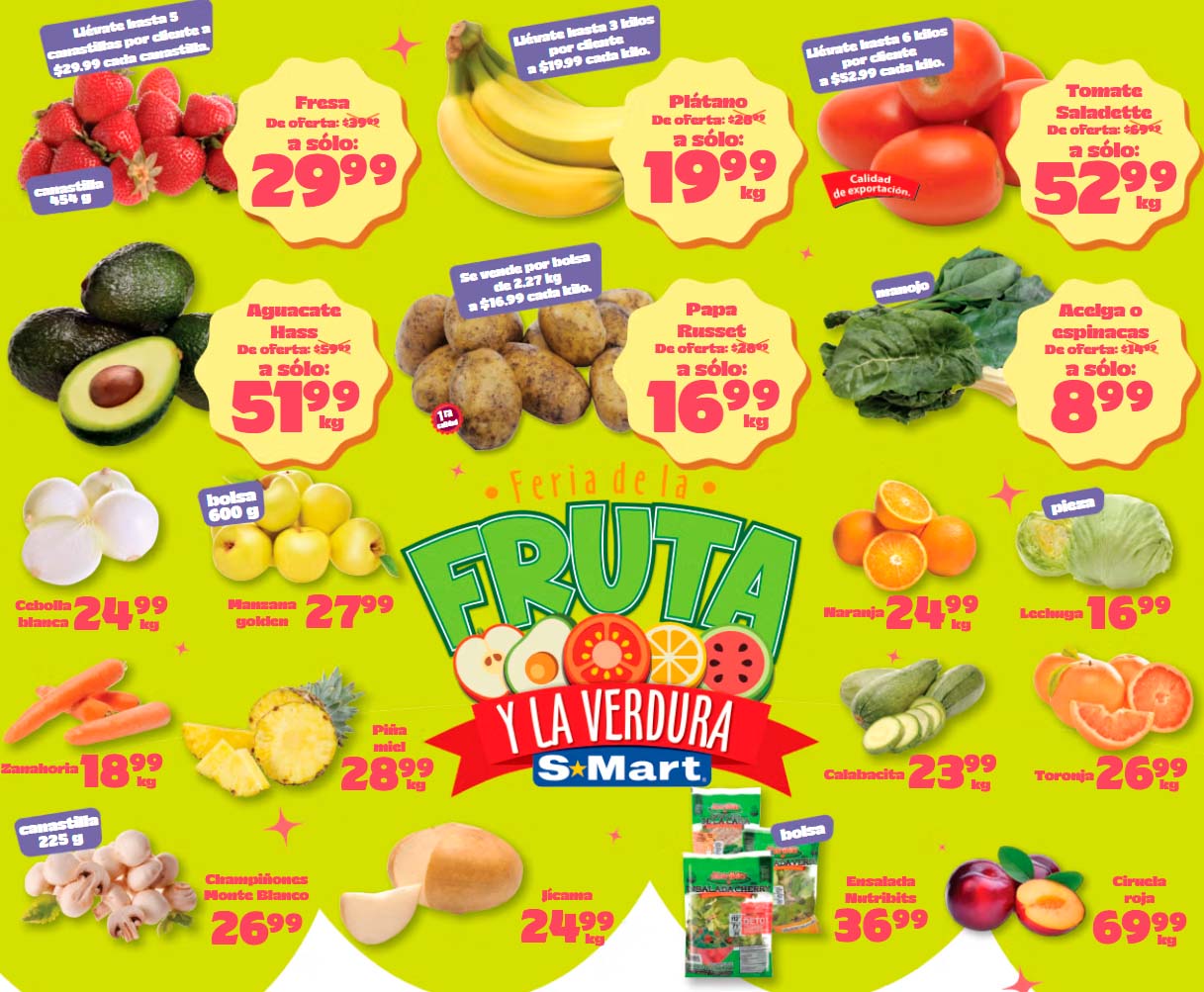 Acabo de ver el folleto de S-Mart “3 Días de Frutas y Verduras”, que contiene las siguientes ofertas válidas del 7 al 9 de abril 2026, en el encontrarás precios especiales que puedes aprovechar para surtir tu despensa.