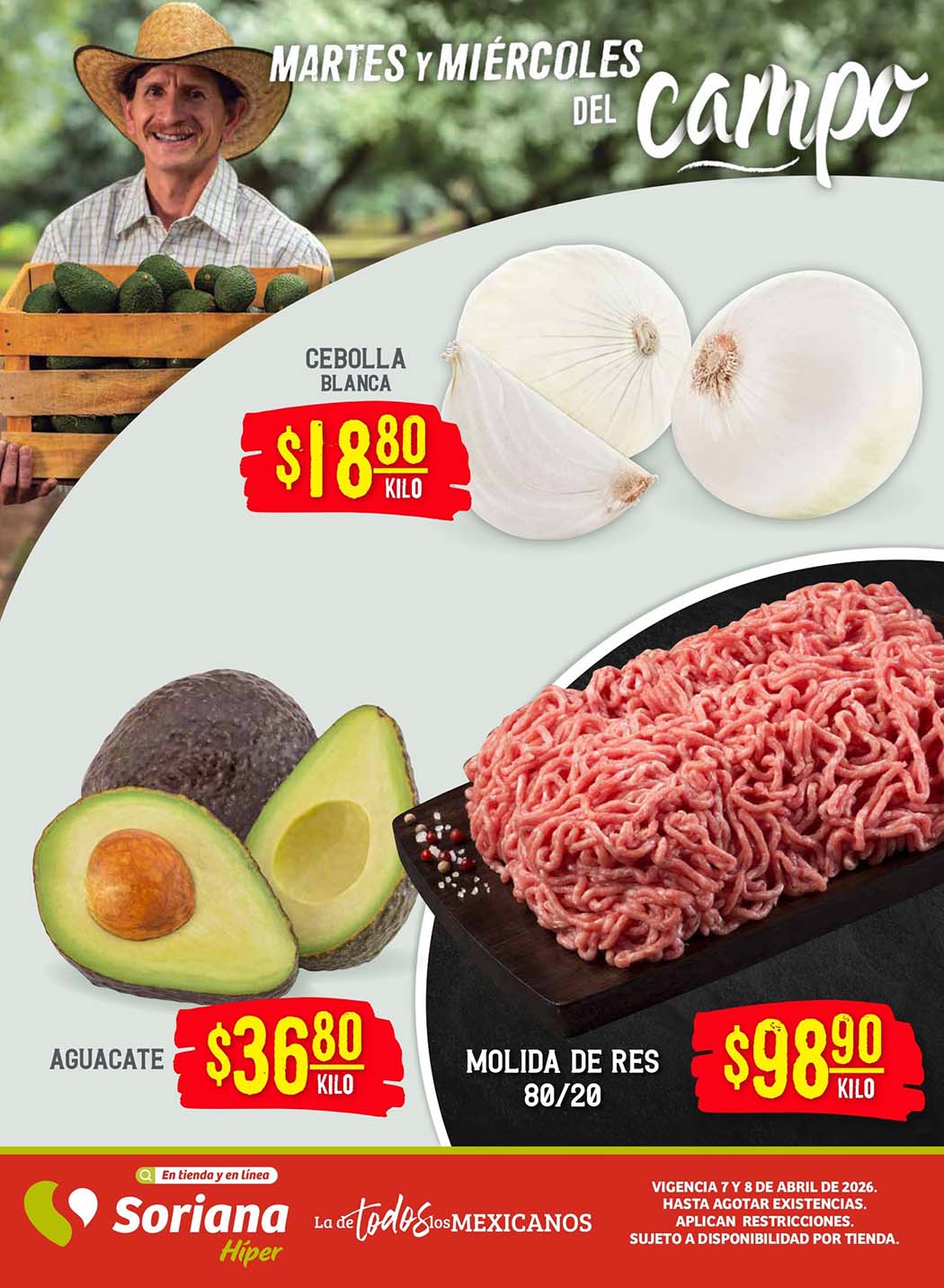 El Martes y Miércoles del Campo de Soriana tiene preparadas las siguientes ofertas de frutas y verduras para este 7 y 8 de abril 2026 que aplican en sucursales Soriana Híper participantes de la República Mexicana. Les comparto la lista de precios, para que compares y ahorres varios pesos por tus compras.