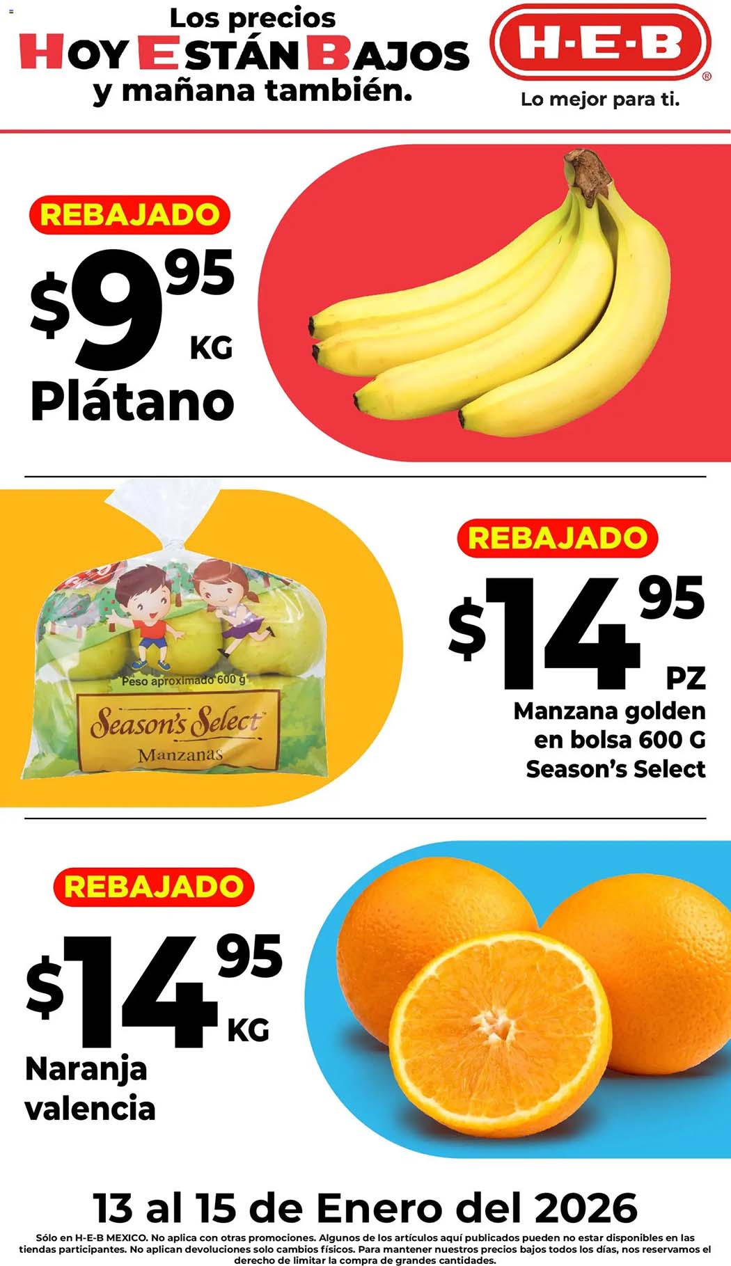 Ofertas HEB frutas y verduras del 13 al 19 de enero 2026