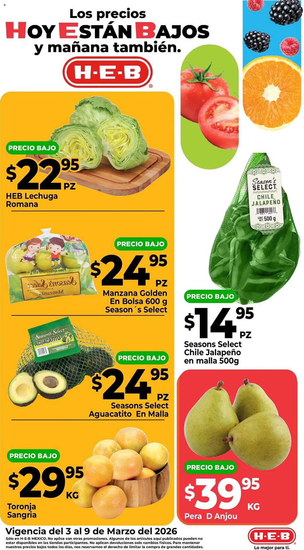 Ofertas HEB frutas y verduras del 3 al 9 de marzo 2026