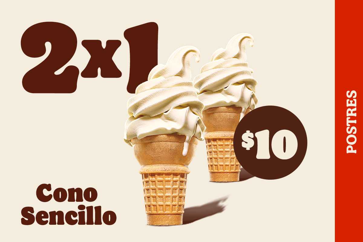 Burger King tiene para ti la promoción de 2x1 para todos los Conos de helado sencillos. El…